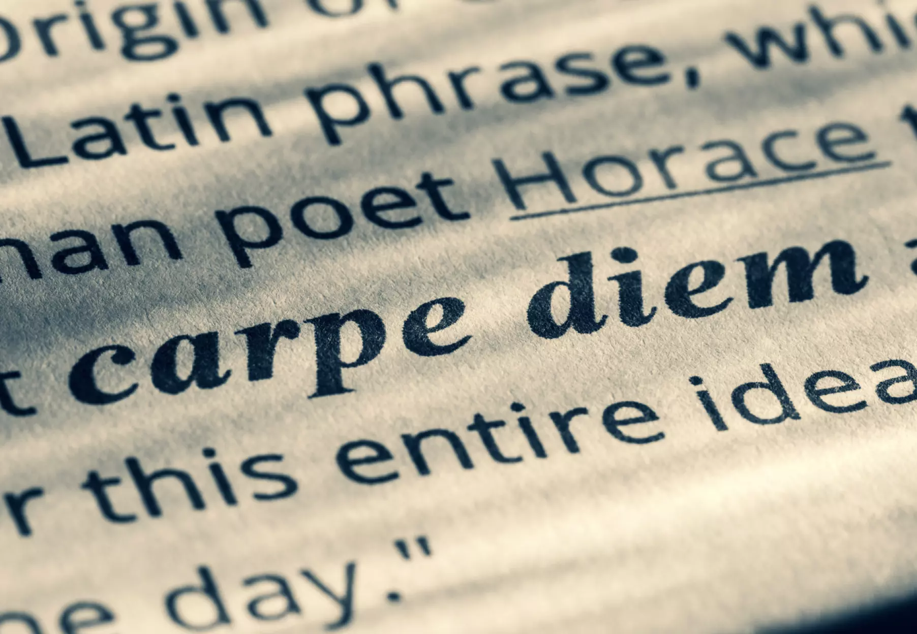 “Carpe diem” pochází z latiny a znamená “užij si dne” a vyzývá k tomu, abychom si užili přítomný okamžik a neodkládali věci na později.